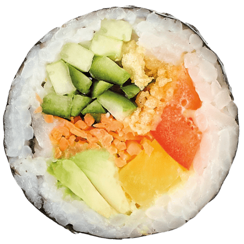 mit japanischem Eieromelette, Frischkäse, Avocado, Gurke und Paprika. (5)